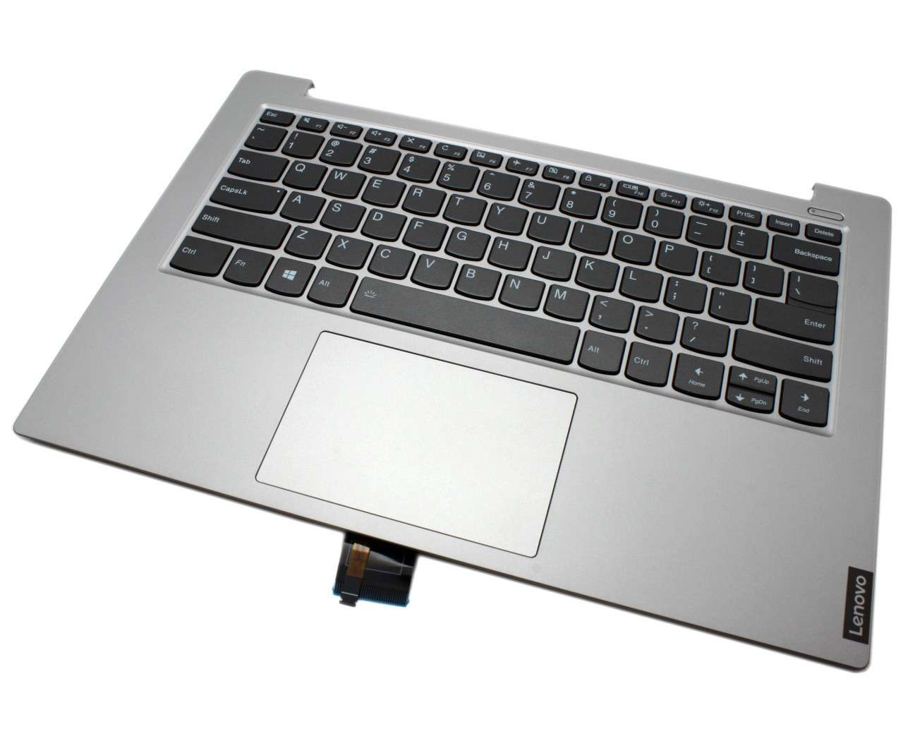 Tastatura laptop noua compatibila Lenovo IdeaPad S340-14IIL Neagra cu Palmrest Gri si TouchPad iluminata backlit